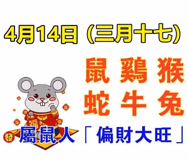 4月14日生肖運勢_鼠、雞、猴大吉!