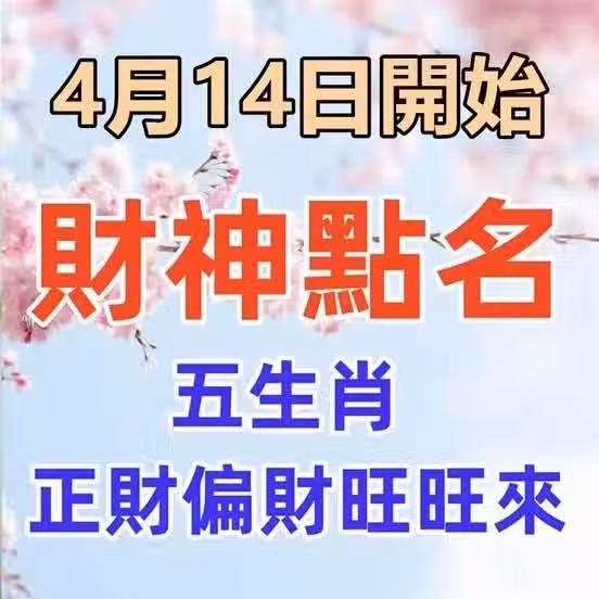 4月14日開始財神點名,正財偏財旺旺來的生肖.