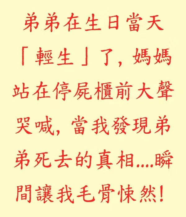 弟弟在生日當天「輕. 生」了,媽媽站在停屍櫃前大聲哭喊,當我發現弟弟死去的真相....瞬間讓我毛骨悚然!