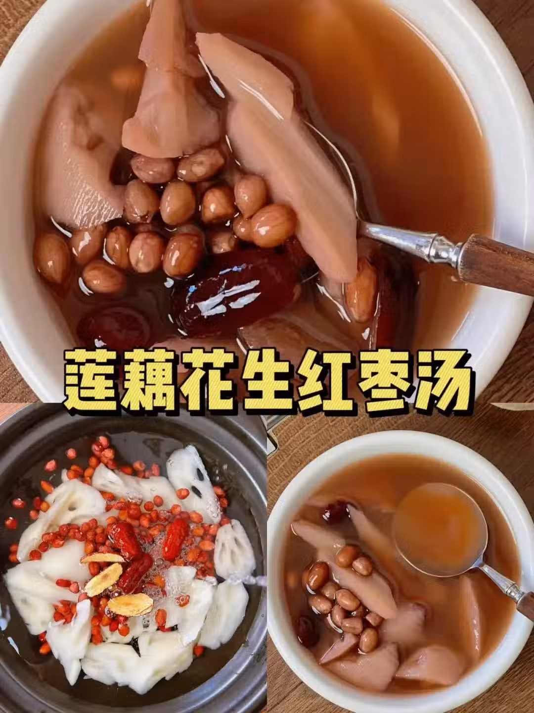 1、花生用水沖洗一下。蓮藕用水沖洗乾淨,去皮切正小塊,紅棗用水沖洗乾淨,把裡面的核去了切成片狀。