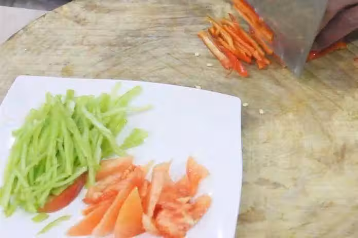 2. 鍋里燒水,加入少量白醋防止茄子氧化變黑,水開後把茄子倒入鍋內焯水1分鐘,然後撈出茄子,控干水分。