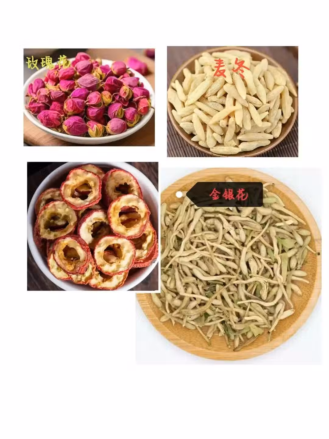 金銀花1g➕玫瑰花3朵➕麥冬2g➕山楂2g