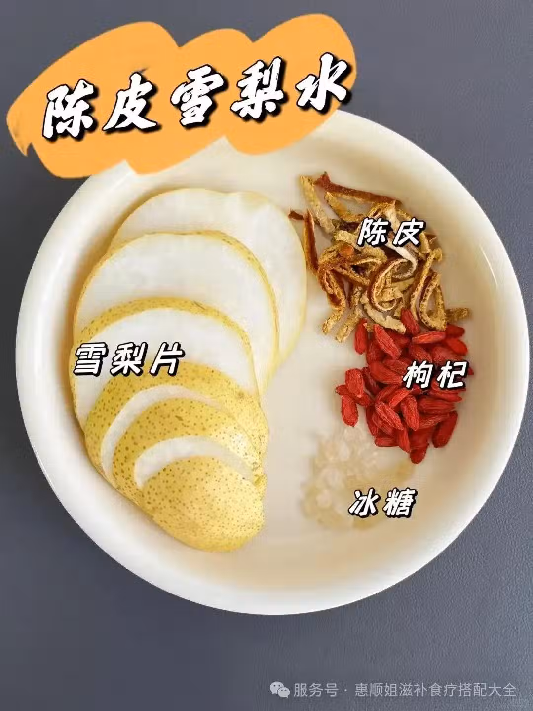 雪梨1個、陳皮1克、枸杞5克、適量冰糖