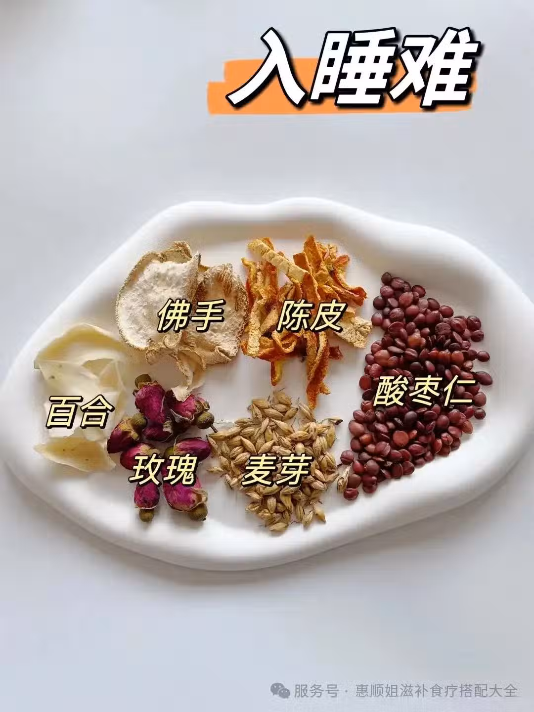 食材:百合10克,佛手5克,陳皮3克,酸棗仁10克,麥芽10克,玫瑰 3朵