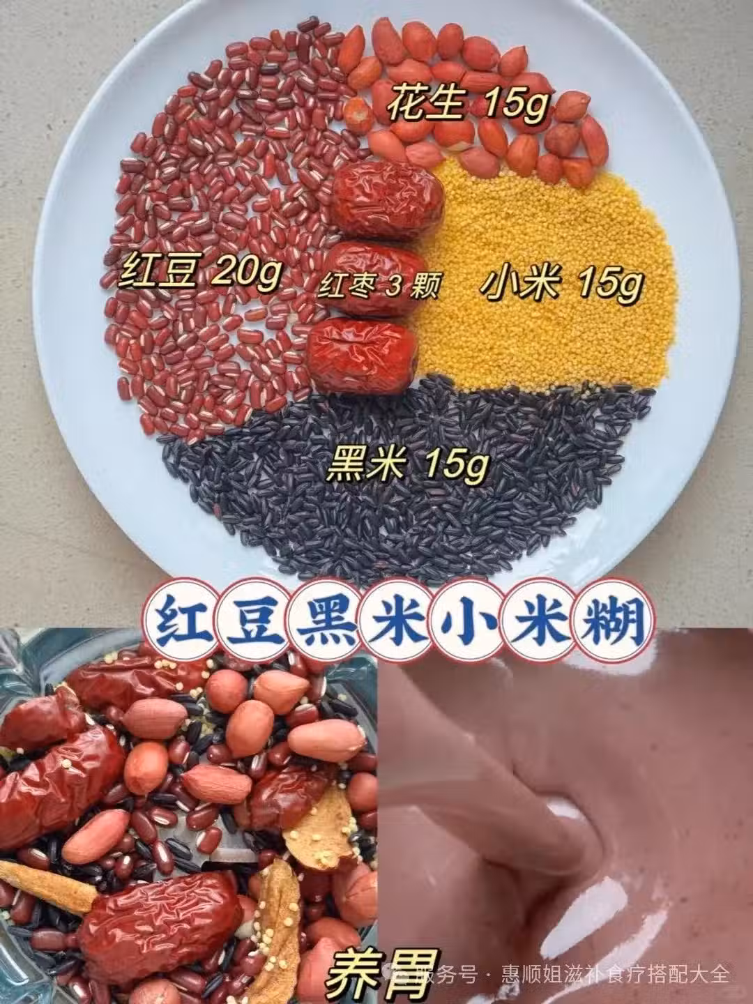材料:紅豆 30g +糯米 15g +紅棗 5 顆 +水(燒好後 兌 200ml 純牛奶)