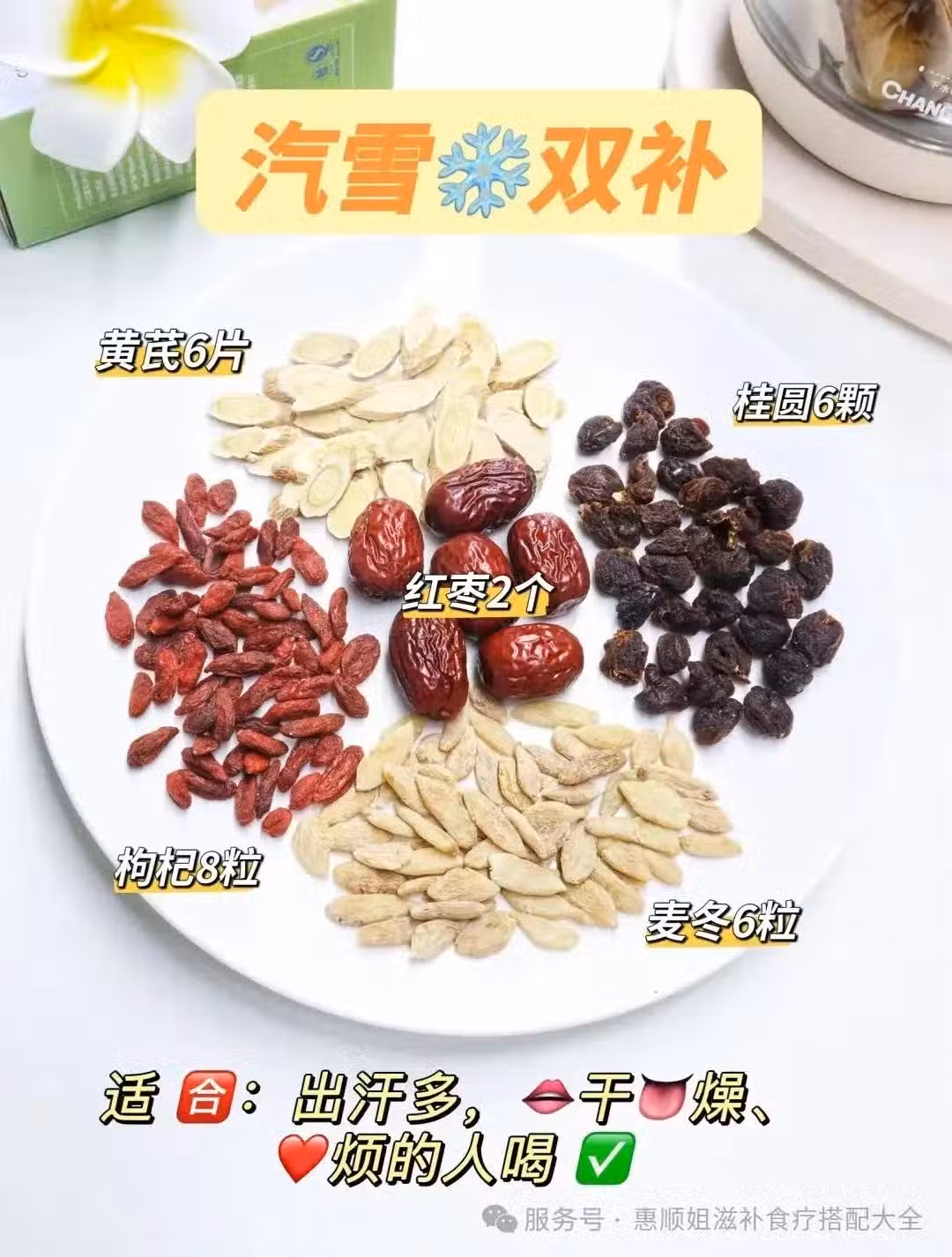 7⃣️ 黃芪+黨參+西洋參+麥冬