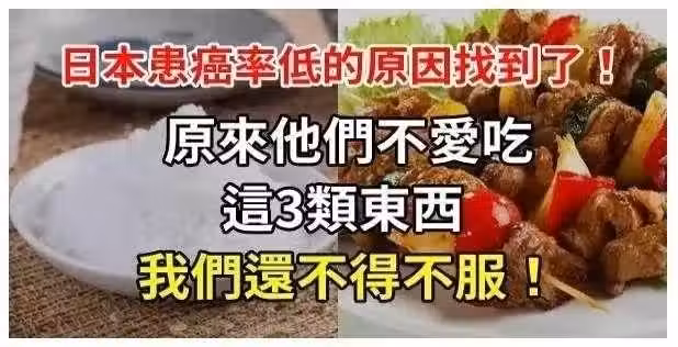 日本患癌率低的原因找到了!原來他們不愛吃「這3類東西」我們不得不服