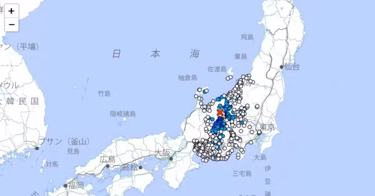 日本發生地震!根據日本氣象廳資訊,當地時間20時19分左右,發生芮氏規模5.0地震,震源深度10公里,屬於極淺層地震,震央位於長野縣北部,最大震度5弱。