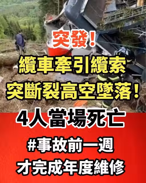 突發!纜車牽引纜索突斷裂高空墜落!4人當場死*亡 #事故前一周才完成年度維修