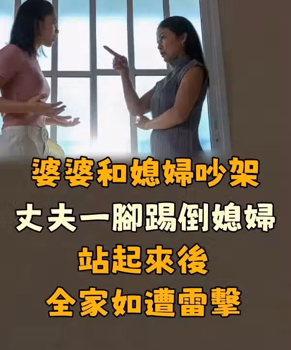 婆婆和媳婦吵架,丈夫一腳踢倒媳婦,站起來後,全家如遭雷擊~