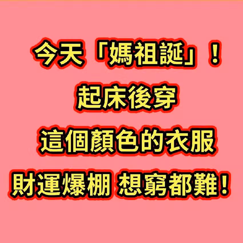 錯過再等20年!4月20「媽祖誕」!一定要穿這個顏色的衣服,財運爆棚,想窮都難!
