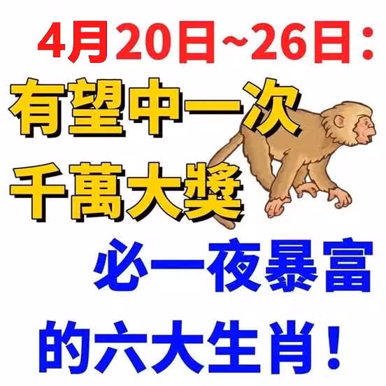 4月20日~26日:有望中一次千萬大獎,必一夜暴富的生肖!