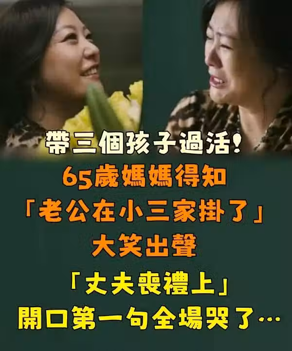 帶著三個孩子過活!65歲媽媽得知「老公在小三家掛了」大笑出聲 「丈夫喪禮上」開口第一句全場哭了…