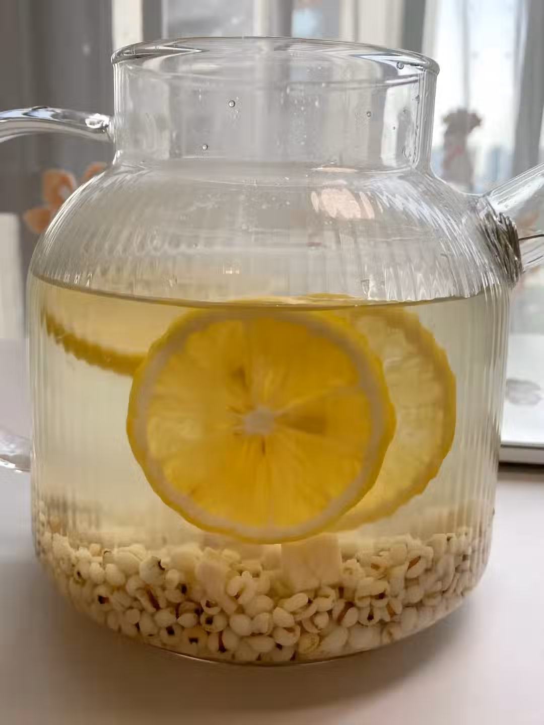 姐妹們潮濕天一定要多多喝這個薏米檸檬水!太適合經常熬夜、整天在空調房的姐妹了! 薏米+茯苓都是對除的好食材!真心建議姐妹們都把奶茶換成它!黑皮的姐妹一定要試試! 搭配檸檬,滿滿的vc~每周堅持喝一次就夠了! 薏米:天然「祛濕能手」,溫和排出體內廢水,改善水腫虛胖。茯苓:低調的「健脾高手」,幫助脾胃運化水濕,掃除疲憊感。檸檬:VC「美白引擎」,促進代謝提亮膚色,淡淡果香喚醒味蕾。 薏米、茯苓促進水分代謝,減少體內濕氣(中醫認為「濕氣重則易胖」)。檸檬酸加速脂肪分解,但需配合飲食和運動。薏米中的膳食纖維促進有益菌生長,緩解便秘或腹瀉。