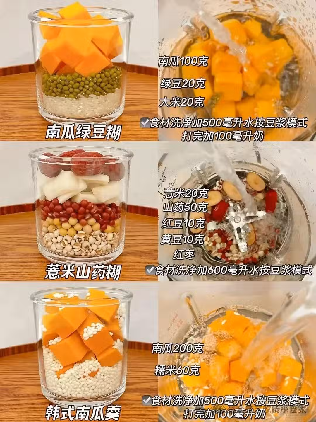 準備食材:南瓜,綠豆,大米,牛奶,水。