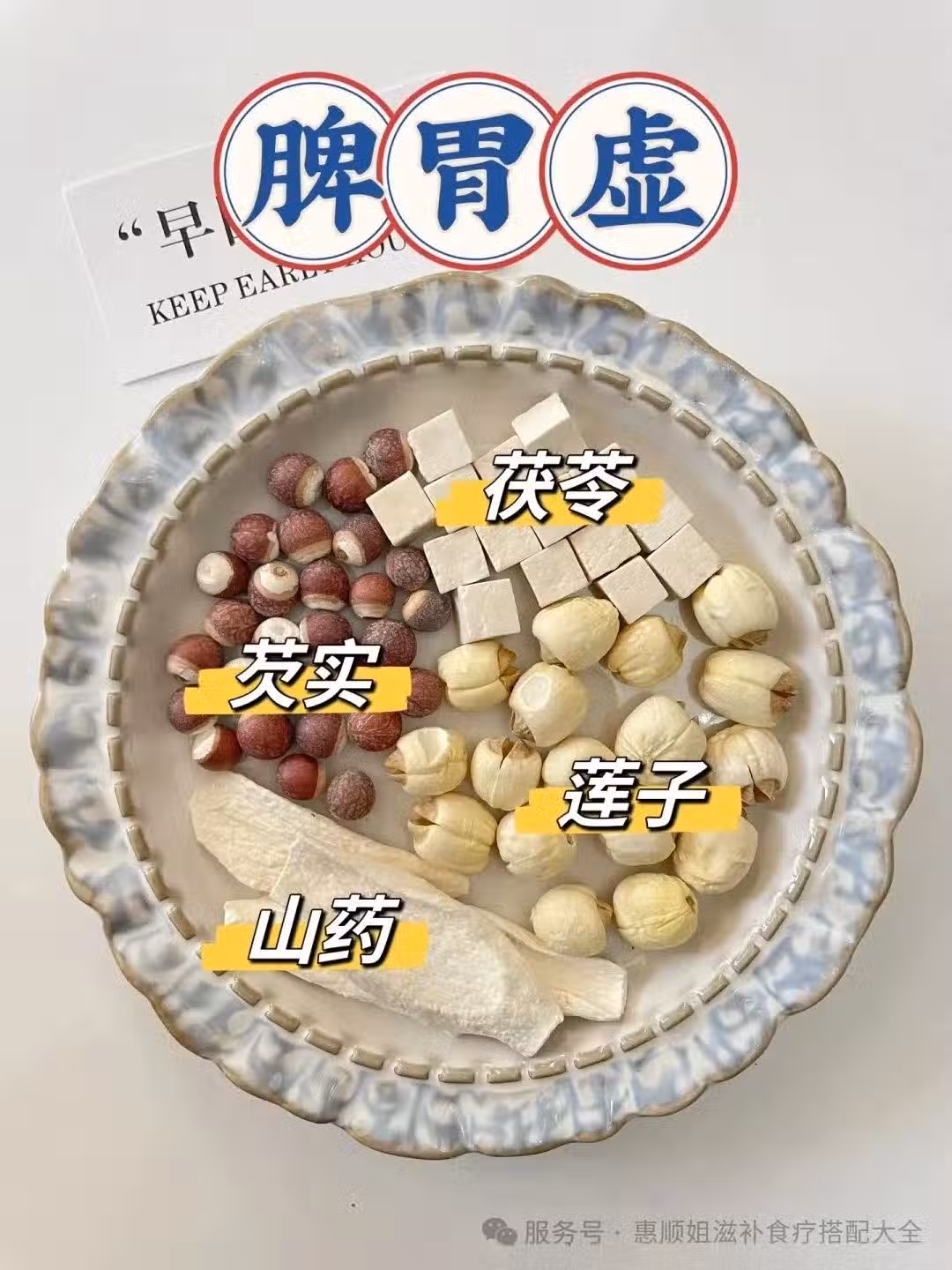 🍵 茯苓10克、山藥15克、蓮子10克、芡實10克