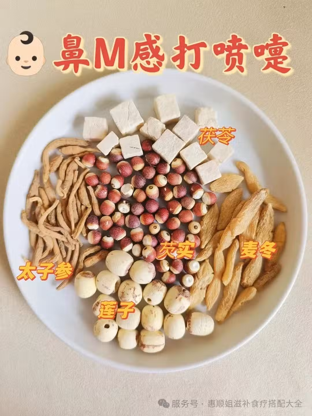 ✅鼻敏感打噴嚏:太子參10克、茯苓10克、芡實10克、麥冬10克、蓮子10克