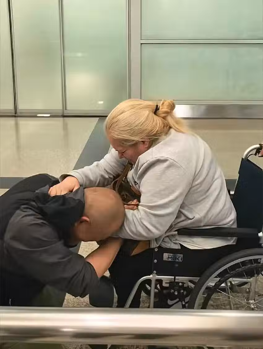 岳母因為身體不好,她坐在輪椅上,她一邊安慰楊淙,一邊情緒也崩潰了,忍不住哭了起來。