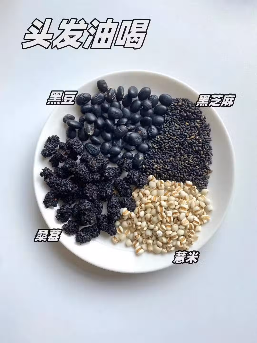 ☑️食材:黑豆+黑芝麻+薏米+桑葚