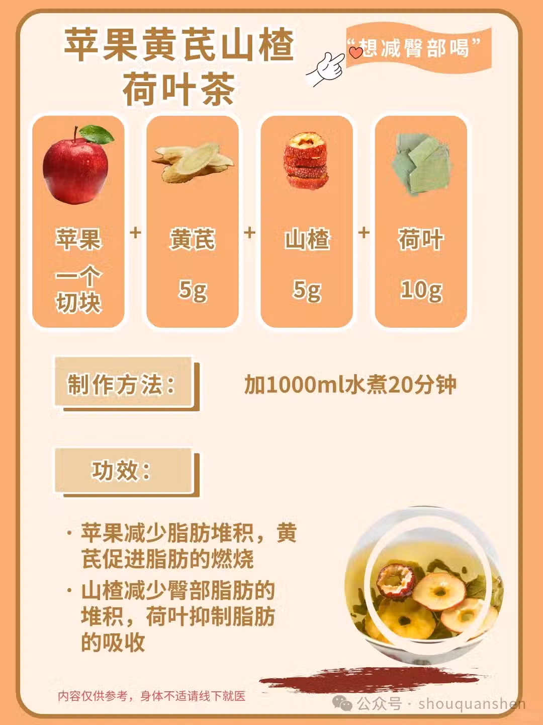 2. 蘋果黃芪山楂荷葉茶 | 減掉臀部贅肉,緊緻曲線