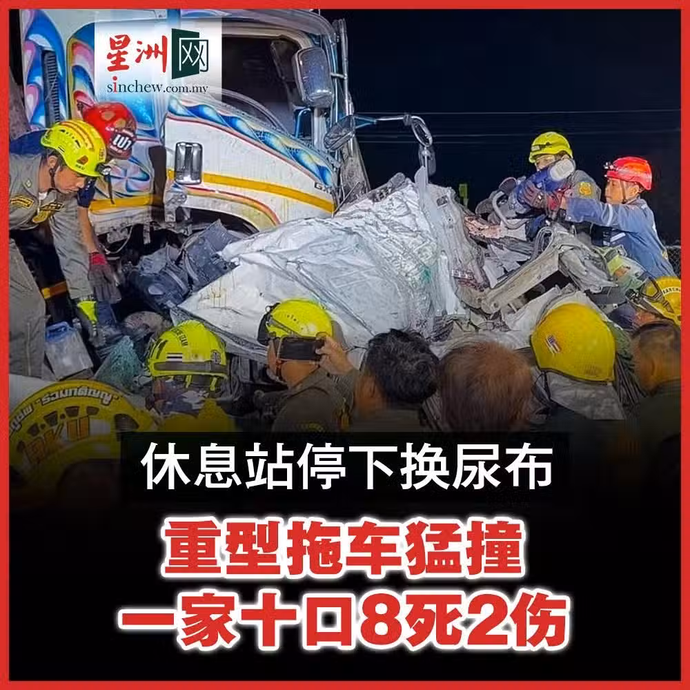 休息站換尿布遭拖車猛撞 10人家庭8死2重傷