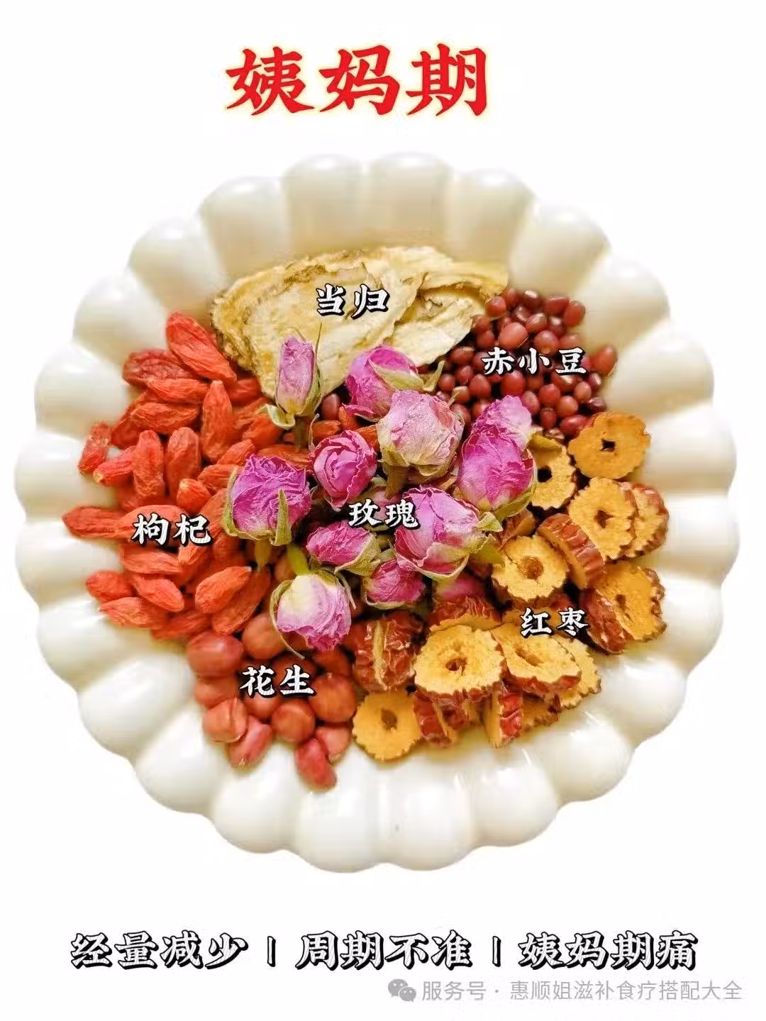 材料:玫瑰2朵、枸杞10克、當歸5克、紅棗3顆、花生20克