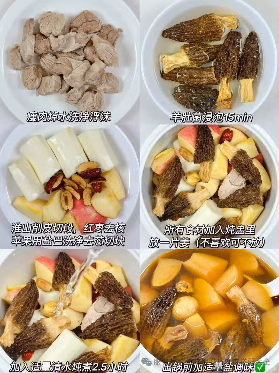 1️⃣瘦肉焯水洗凈浮沫,羊肚菌浸泡15min