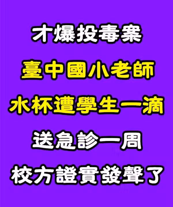 才爆投.毒案!台中國小老師「水杯遭學生滴一滴」送急診一周 校方證實發聲了