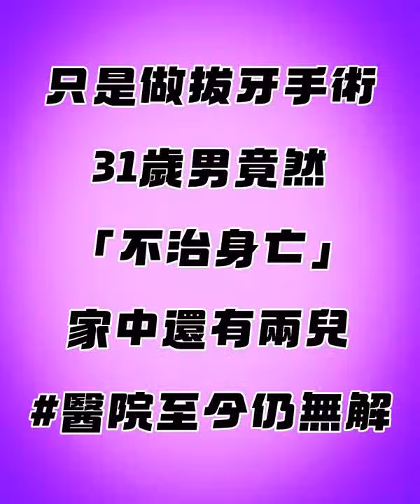 只是做拔牙手術!31歲男竟「不治身亡」家中還有兩兒 #醫院至今仍無解