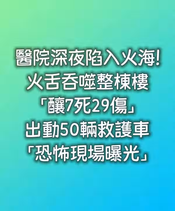 快訊/醫院深夜陷入火海!火舌吞噬整棟樓「釀7死29傷」 出動50輛救護車「恐怖現場曝光」