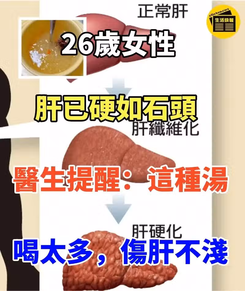 26歲女性,肝已「硬如石頭」, 醫生提醒:這種湯喝太多,傷肝不淺