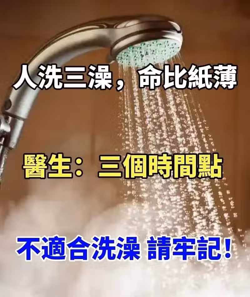 人洗三澡,命比紙薄!醫生:三個時間點不適合洗澡,請牢記!!