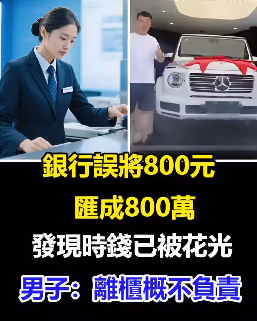 銀行誤將800元匯成「800萬」!發現時錢已被儲戶花光,男子:離櫃概不負責