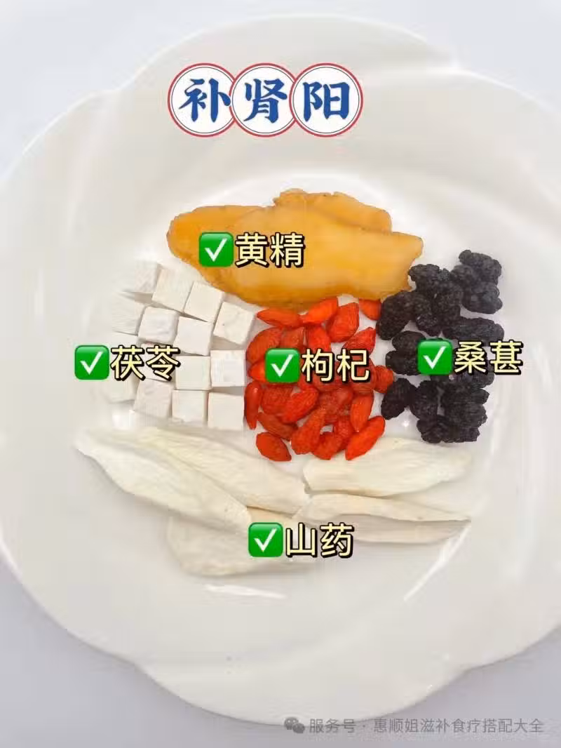 食材:黃精9克、桑葚9克、枸杞6克、茯苓10克、山藥10克