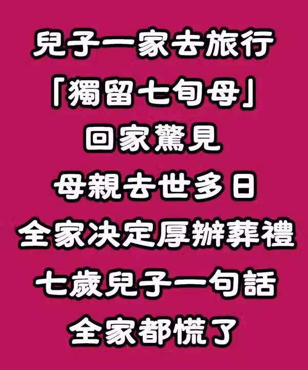 兒子一家去旅行「獨留七旬母」回家驚見「母親去世多日」傷心欲絕!全家決定厚辦葬禮「七歲兒子蹦出一句話」全家腿軟