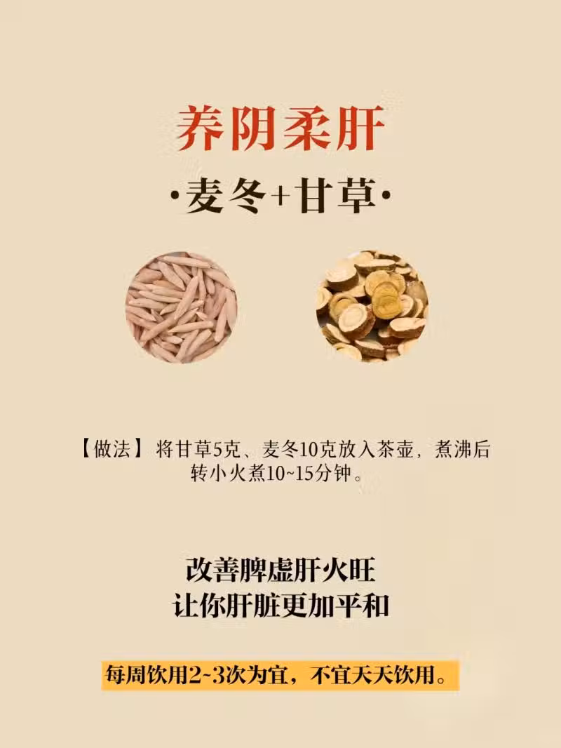 4️⃣ 麥冬甘草茶——肝陰不足救星