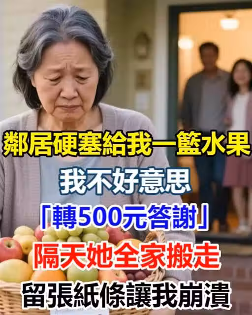 ​​鄰居硬塞給我一籃水果!我不好意思「轉500元答謝」,隔天她全家搬走,留張紙條讓我崩潰...