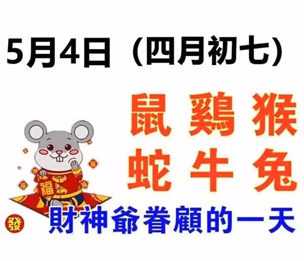 5月4日生肖運勢_鼠、雞、猴大吉!