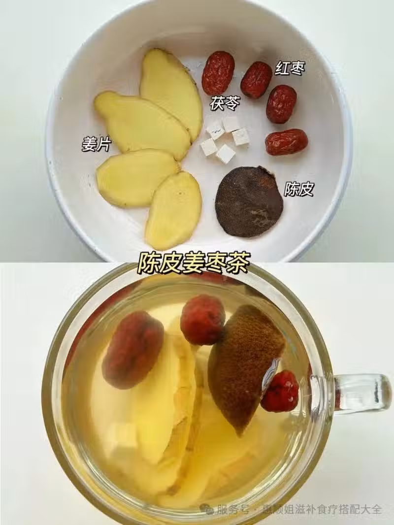 陳皮3克➕茯苓10克➕薑片🫚3片➕紅棗3顆