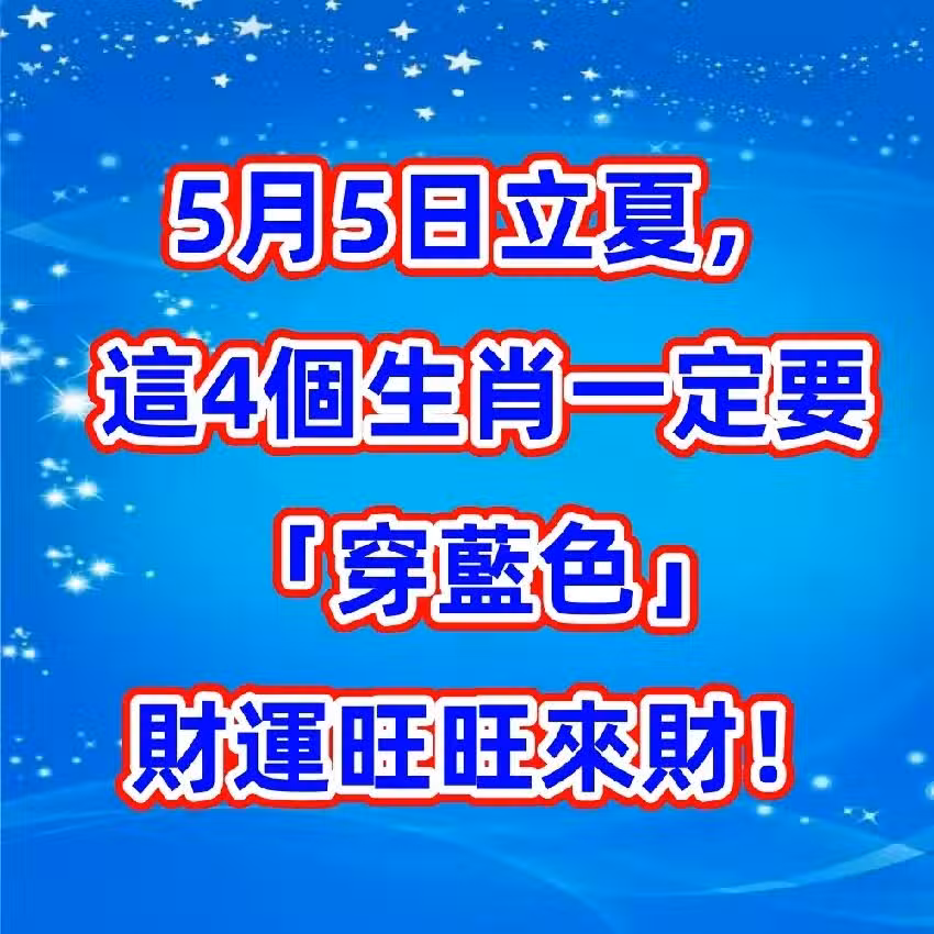 📘 5月5日立夏,這4個生肖一定要「穿藍色」!開啟好運之門、穩賺偏財!