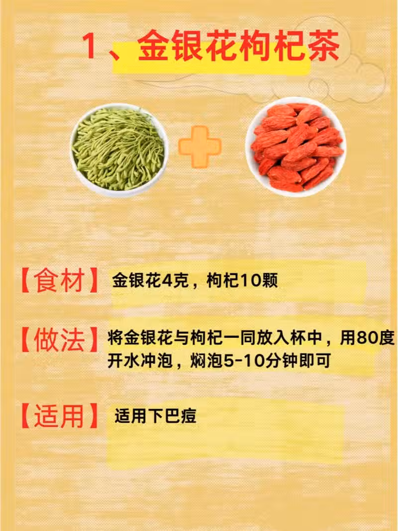 枸杞滋補肝腎,中和金銀花的寒性。熬夜後喝一杯,既能降火祛痘,又能給疲憊的身體「充電」,讓肌膚由內而外透亮起來。