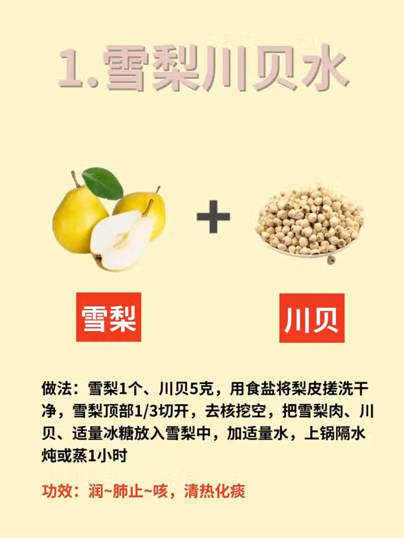 1.雪梨川貝水:潤~肺止~咳,清熱化痰