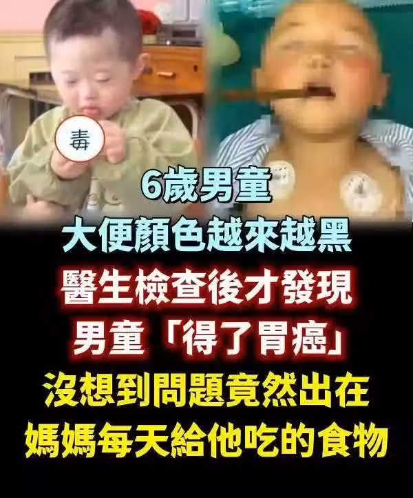 6歲男童大便顏色越來越黑 ,醫生檢查後才發現男童「得了胃癌」!沒想到問題竟然出在媽媽每天給他吃的「這個食物」