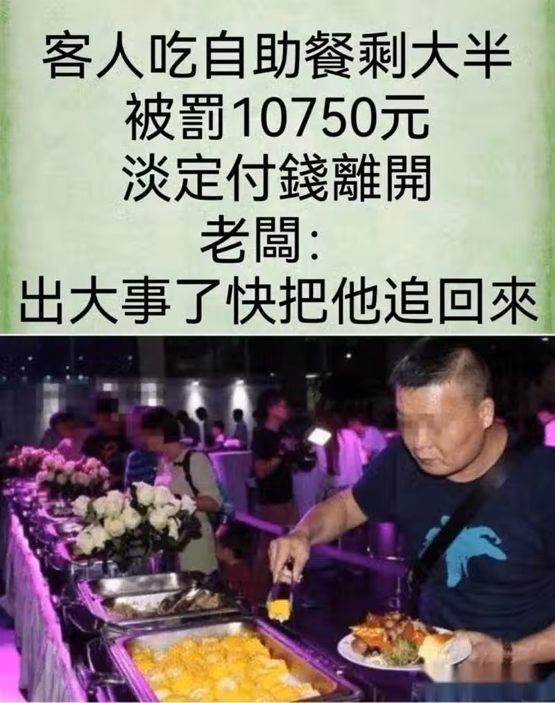 客人吃自助餐剩大半,被罰10750元,淡定付錢離開,老闆:出大事了,快把他追回來.