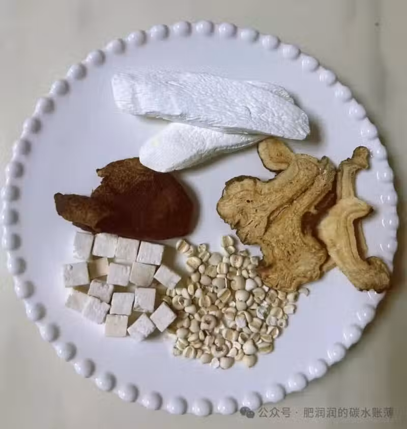 茯苓10克 白朮10克 陳皮5克 山藥10克 薏苡仁15克