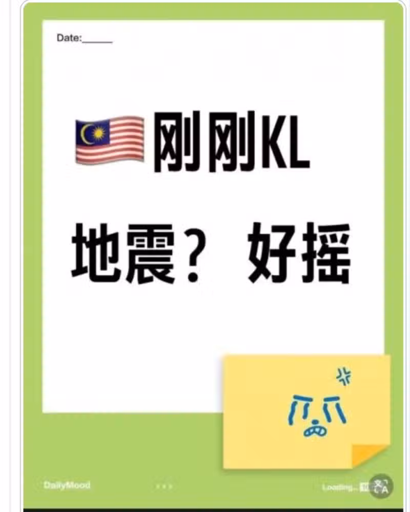 同時,也有一名來自吉隆坡的網民指在煮飯的婆婆也因震感而頭暈,必須坐下休息。