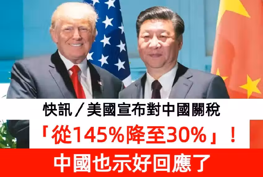 快訊/美國宣布對中國關稅「從145%降至30%」!中國也示好回應了
