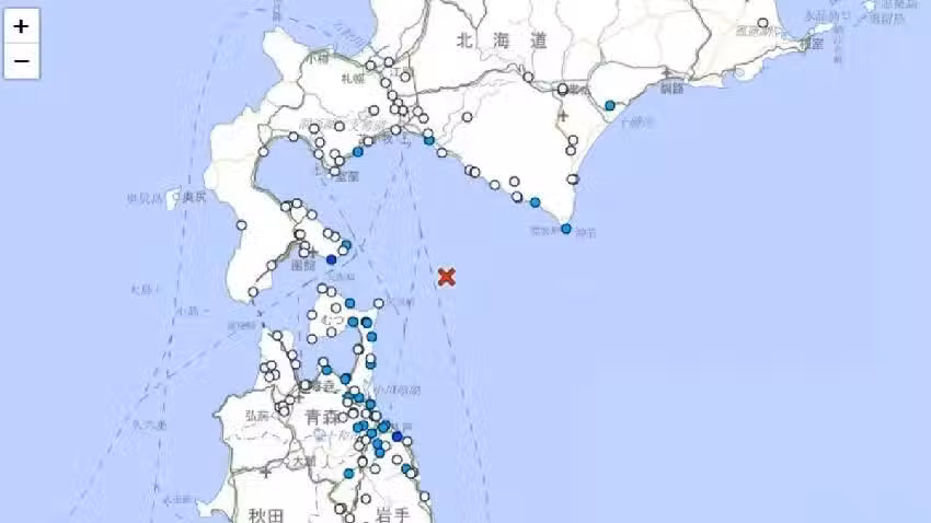 根據日本氣象廳通報,地震發生於當地時間11時54分左右,最大震度3級的地區包括北海道函館市、青森縣東通村以及青森縣階上町。