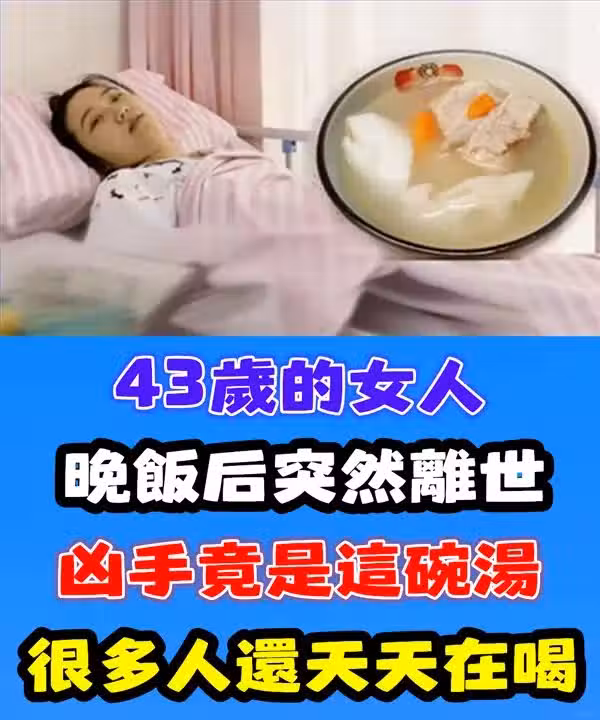 43歲女人晚飯後突然離世!兇手竟是這碗湯,醫生:多喝一口,比砒霜還毒18倍!很多人還天天都在喝