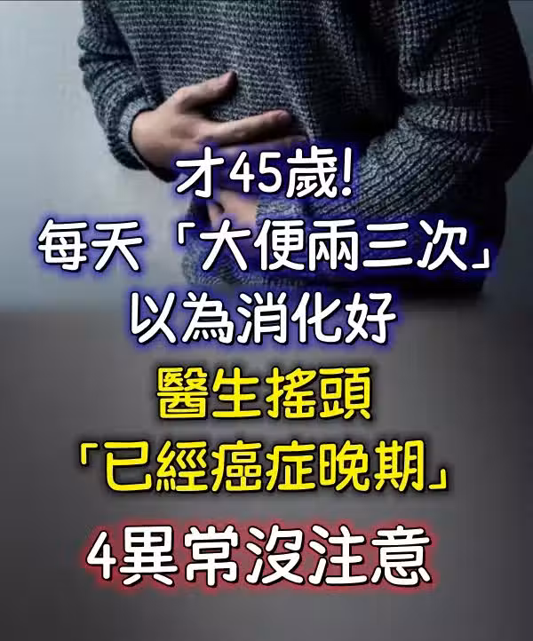 才45歲!他每天「大便兩三次」以為消化好,醫生搖頭「已經癌症晚期」4異常沒注意!!